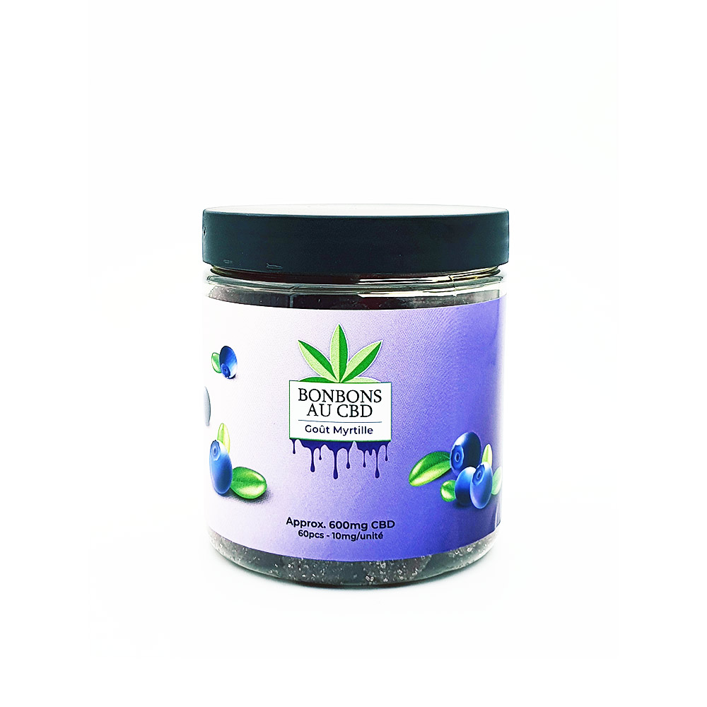 Voici nos Gummies CBD 600mg Myrtille de fabrication artisanale et françaises.